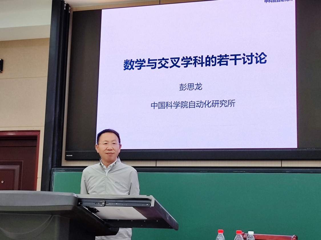 南阶梯教室,中国科学院彭思龙教授应邀来校做了一场题为《数学与交叉学科的若干讨论》的报告。学院部分教师、研究生和本科生等近两百名师生参加了报告会。报告会由学院副院长唐恒才主持。