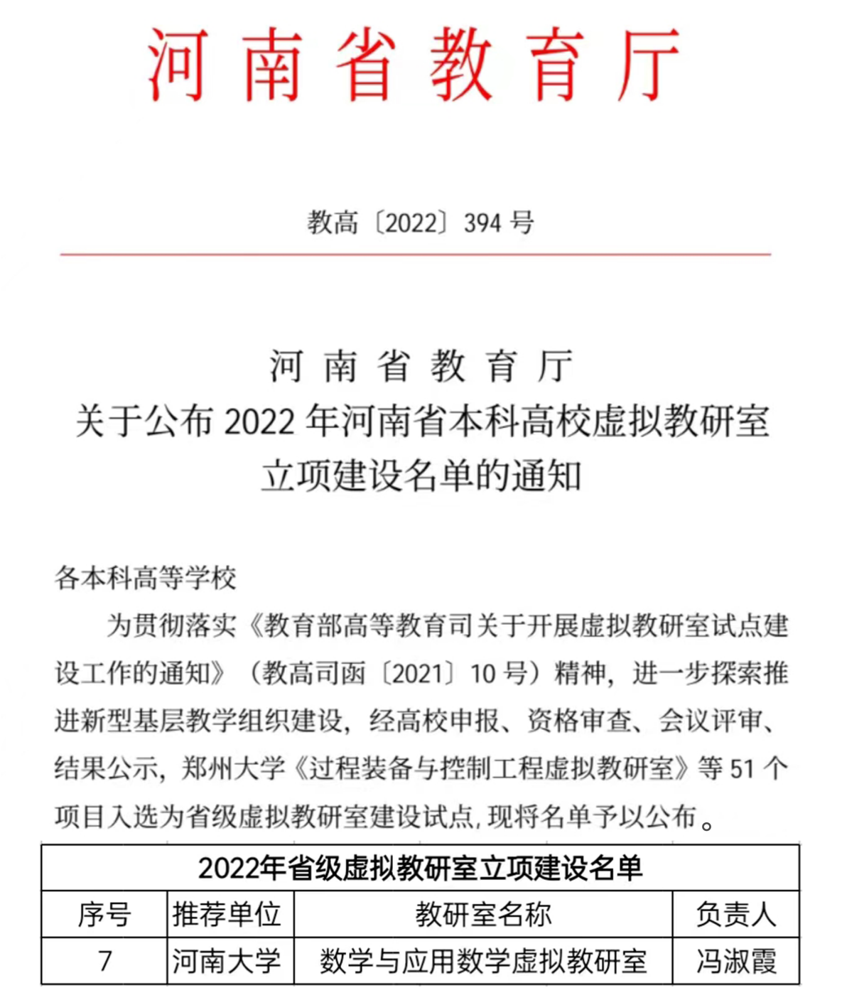 申报的“数学与应用数学专业虚拟教研室”成功入选。