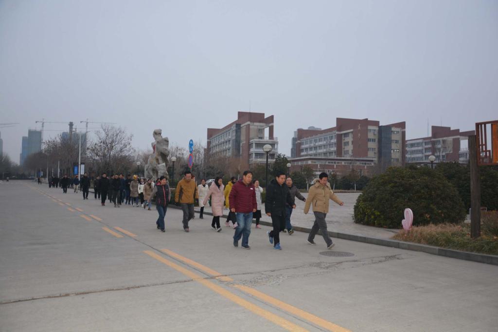 会后,全体教职工参加了学院“迎新年校园健步走”活动。老师们畅快举步,欢乐健走,享受健步走带来的激情活力。一路的欢声笑语,成了校园里最亮丽的一道风景线。