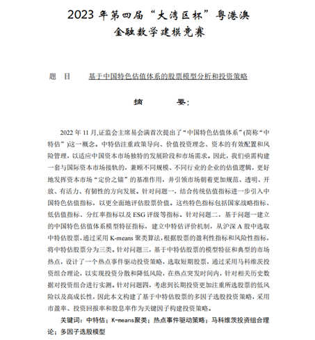 在第四届“大湾区杯”粤港澳金融数学建模竞赛中,尼克成人网