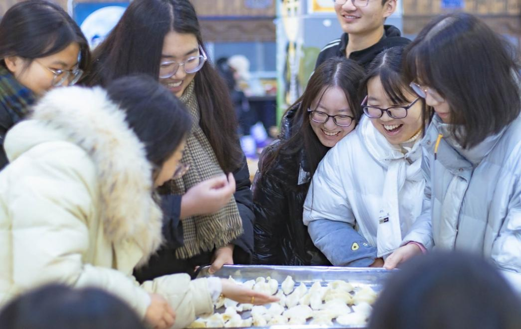 学生们在包饺子的过程中不仅展现出高效的协作能力,还不时爆发出欢笑声。