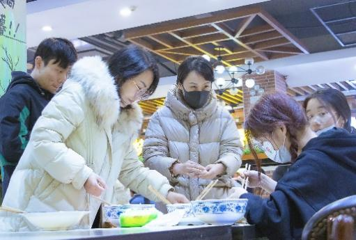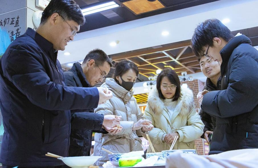 在在学校北苑餐厅二楼举办举行“饺子飘香,校园情浓”主题冬至包饺子活动。学院党委书记曹志伟,党委副书记刘佳明,副院长杨一平及本科生、研究生辅导员和各年级学生代表340余人一起包饺子、过冬至。