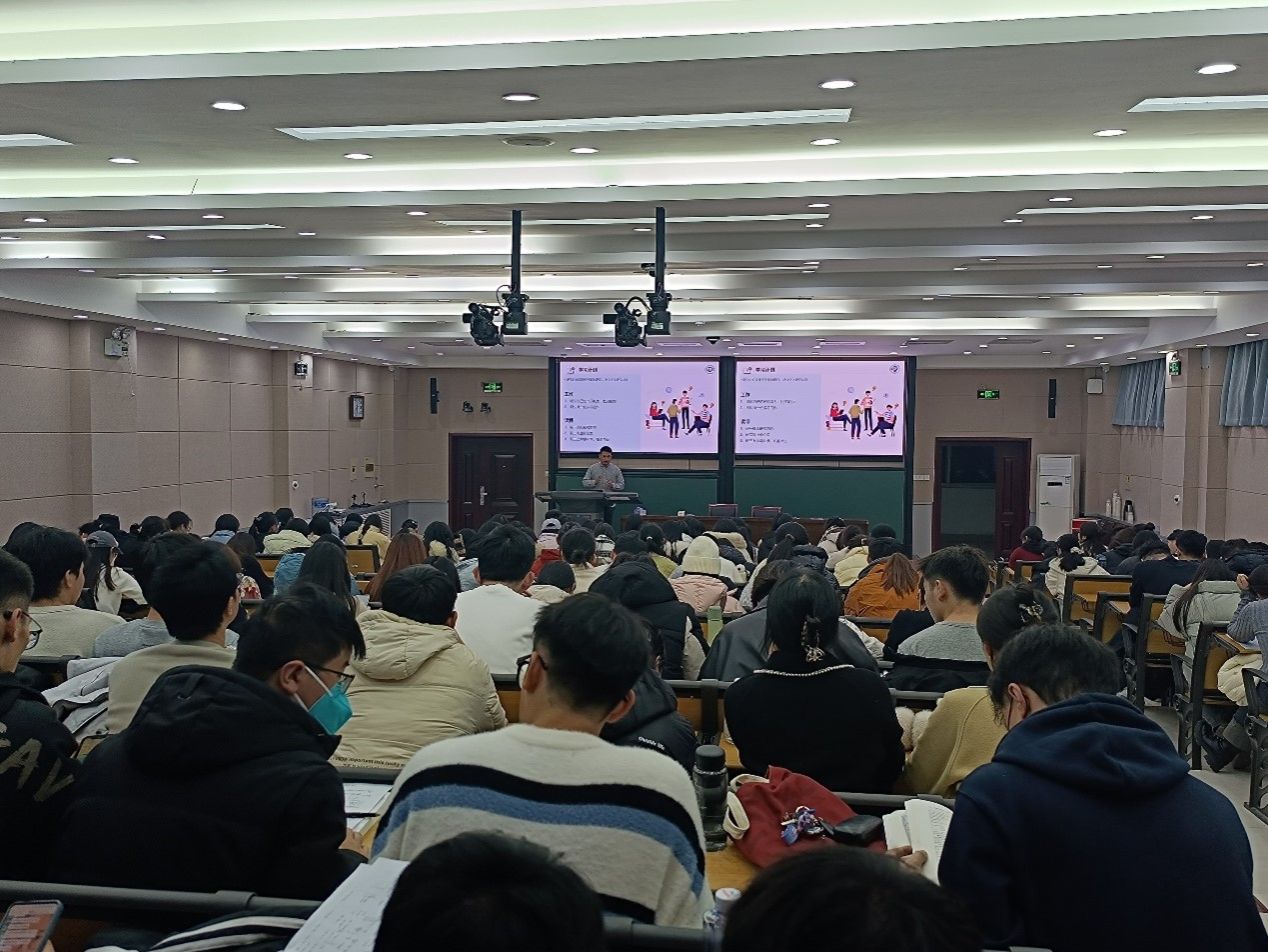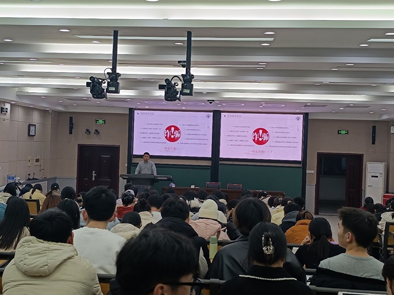 2023级研究生辅导员陈顺杰在南阶教室召开2023级研究生年级大会,此次会议聚焦防范学风建设、电信诈骗以及寒假安全教育等专题,给2023级研究生同学进行全面地阐释和有效引导。2023级全体硕士研究生参加大会。