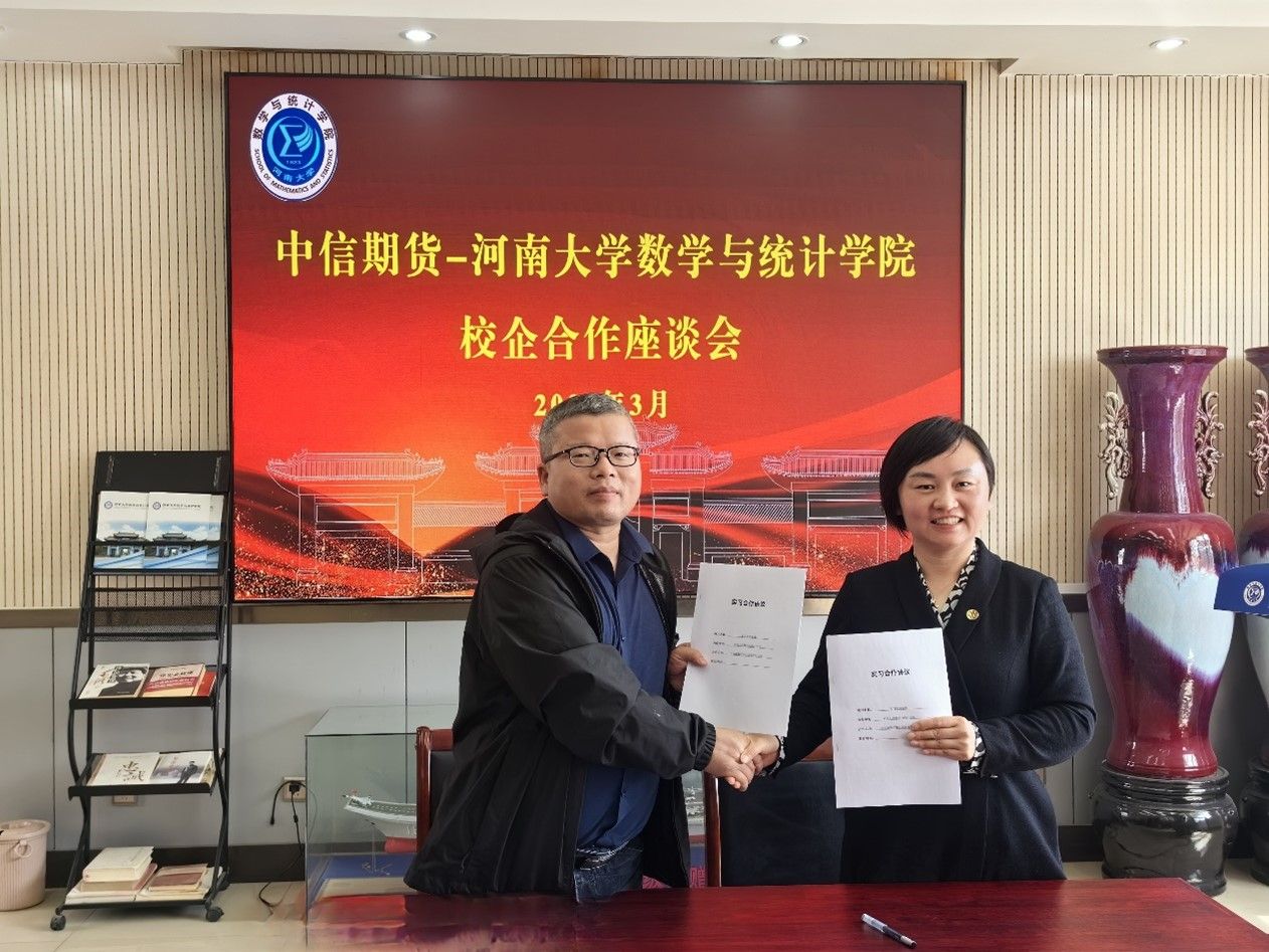 和中信期货在学院二楼会议室举行校企合作洽谈会暨签约仪式。中信期货河南分公司总经理时欣欣、机构部总监邓晓婷、产业部总监张继翔等一行6人,尼克成人网