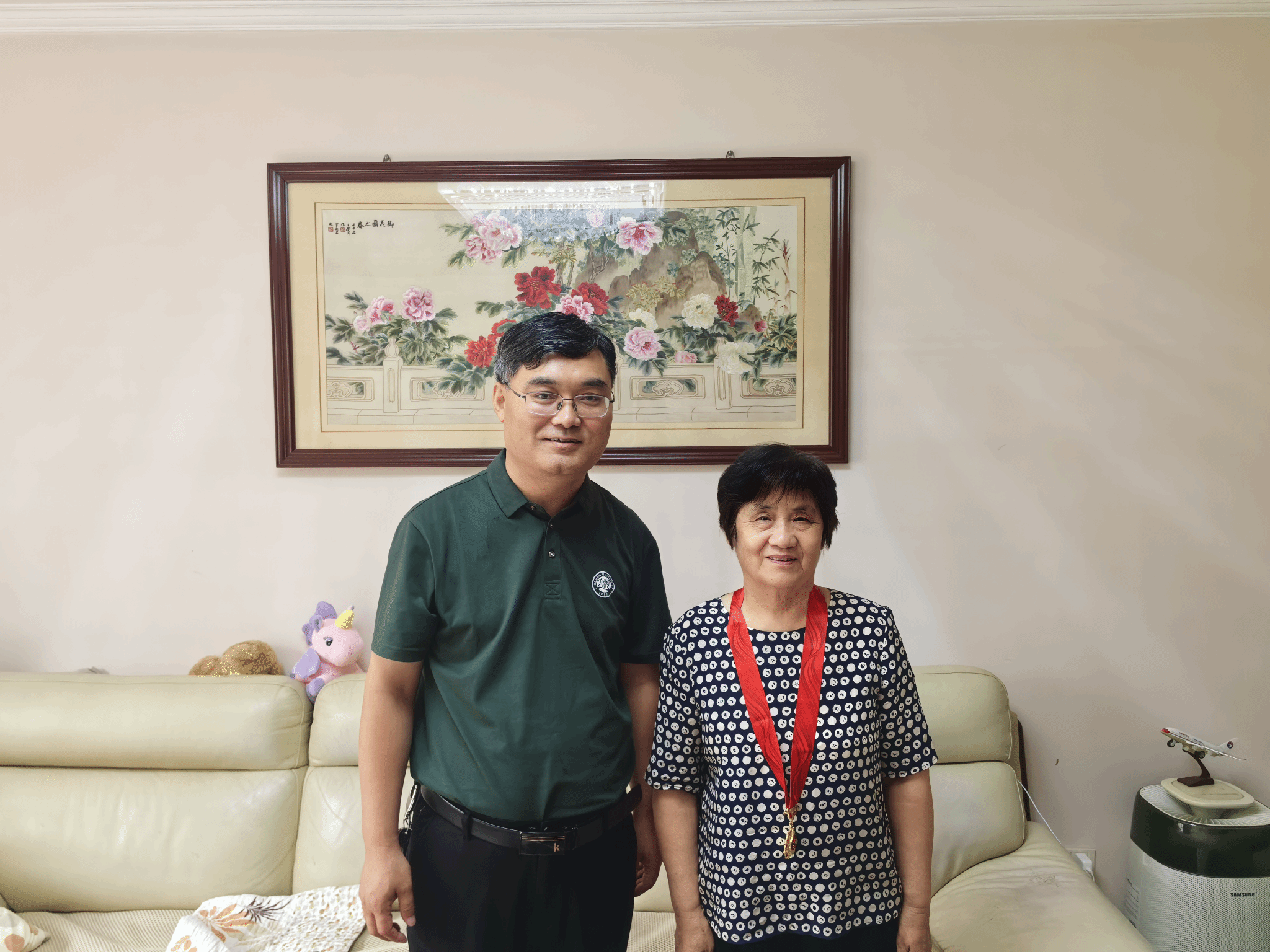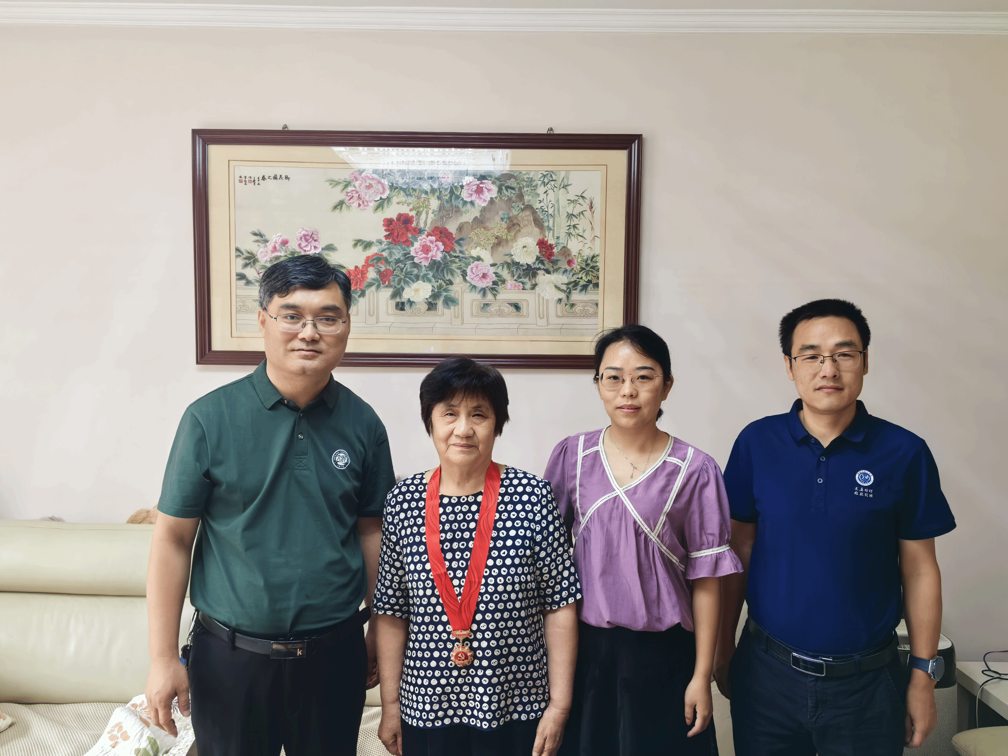 党委书记曹志伟、副院长杨一平、党委办公室主任吴苏苏、行政办公室负责人霍东东一行,前往退休老党员贾兴琴老师家中看望慰问并颁发“光荣在党50年”纪念章。