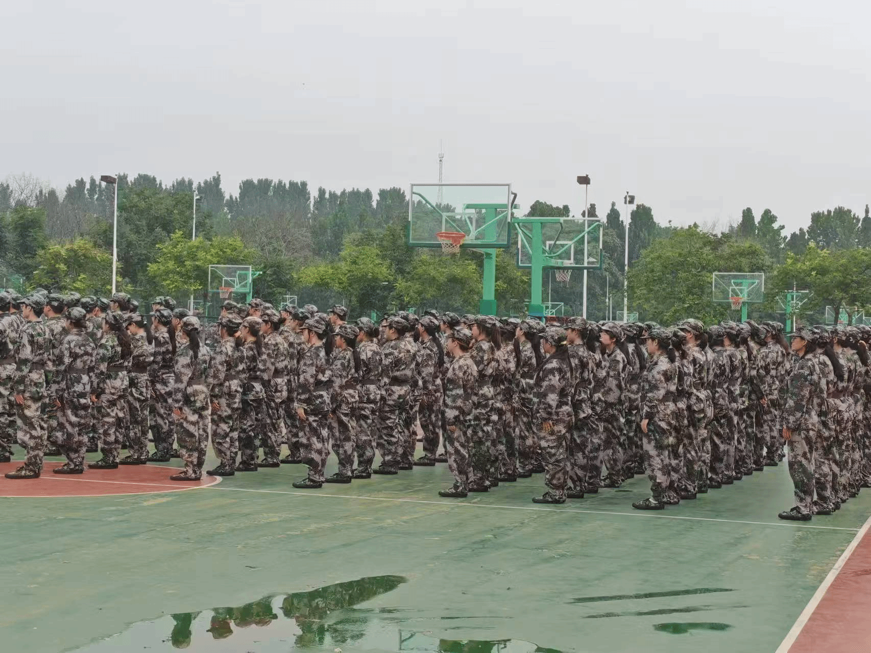 校园到处洋溢着军绿色的风采