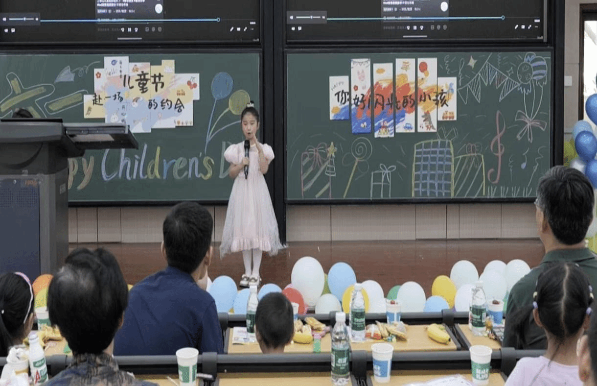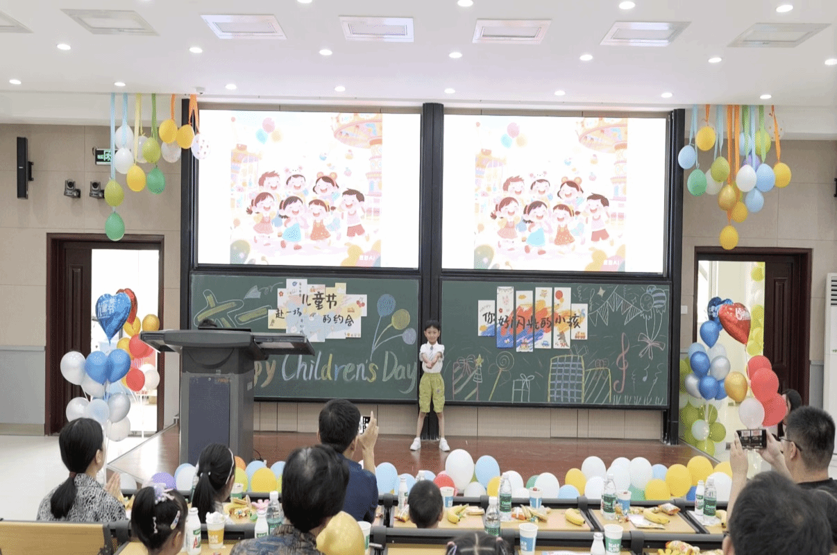 活动在古筝独奏《茉莉花》中拉开了序幕。接着,歌曲、舞蹈、朗诵、武术、说唱、乐器弹唱等节目精彩上演。孩子们在舞台上尽情展示着自己的才艺,展现出自信与活力,赢来了一阵又一阵的喝彩声,也为这个特别的节日增添了更多欢乐与惊喜。在“正话反说”、“数字宝藏”、“成语接龙”的趣味游戏中,小朋友们积极参与其中,现场气氛不断被点燃。