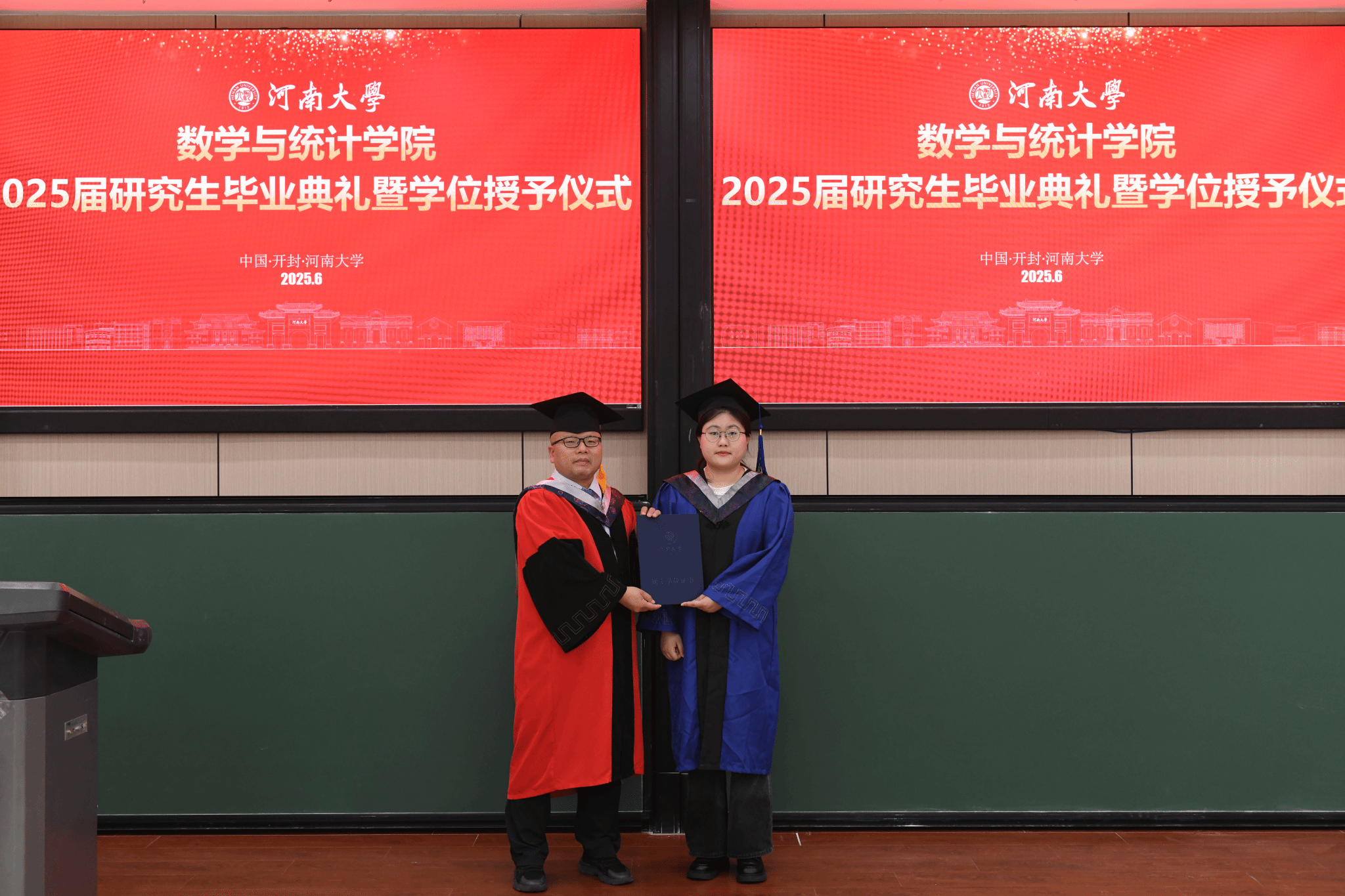 韩小森对毕业生们圆满完成学业表示祝贺,并高度评价了毕业生们在校期间取得的丰硕成果,寄语大家要永葆求真务实、化繁为简、创新突破、经世致用、坚韧不拔的数学精神品格。毕业是终身学习的新起点,他勉励毕业生们带着河大人的智慧与担当,“找到人生的最优解,谱写壮丽的生命华章”,并表示母校永远是学子的精神家园和坚强后盾,欢迎常回家看看。