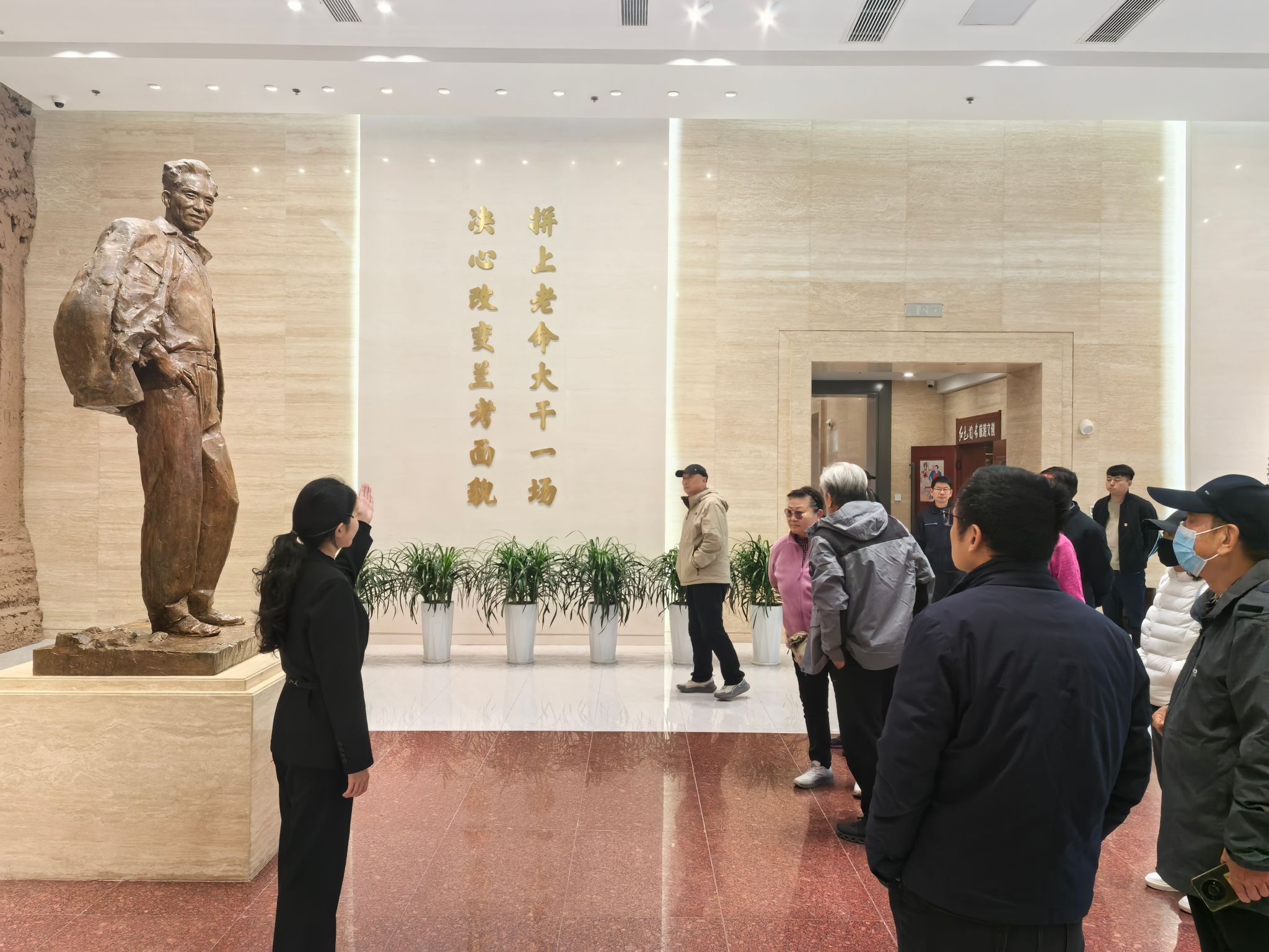 活动首站,老师们来到东坝头黄河湾,观赏“黄河最后一弯”的壮阔景色,了解黄河治理的历史与生态变迁,感受党中央“一定要把黄河的事情办好”的决心。随后,大家参观了焦裕禄纪念馆,一件件饱经风霜的遗物、一幅幅感人至深的图片,生动再现了焦裕禄同志当年访贫问苦、带领群众同“三害”作斗争的动人场景。老教师们时而驻足凝视,时而低声交流,无不为焦裕禄同志“心中装着全体人民,唯独没有他自己”的精神所深深感动。在“焦桐”下,老教师们抚今追昔,感慨万千。这棵挺拔的泡桐树,不仅是焦裕禄精神的见证,也激励着一代代教育工作者扎根奉献。