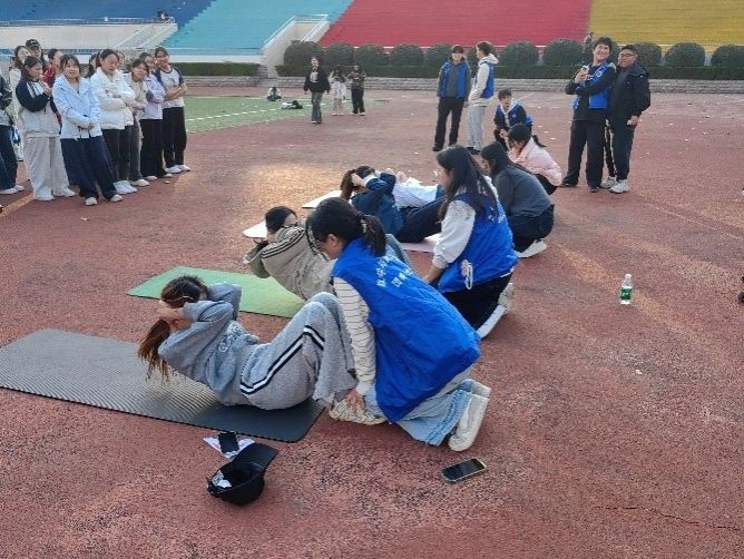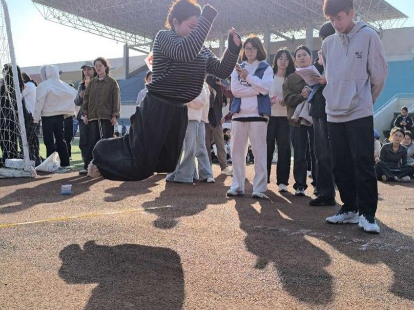 本届运动会设有田赛、径赛和集体项目三大类别,运动场上,阳光和煦,秋风送爽,处处洋溢着青春的活力与拼搏的激情。摆臂蹬地,每一步都朝着终点冲刺,冲线瞬间的呐喊,是青春最热血的证明。 “蹬—转—挺—推”,实心球划出的弧线,藏着全身力量的传递。屈膝摆臂,舒展着越过起跳线,稳稳落地的那一刻,就是对自己的突破。双脚匀速起跳,藏着青春的心跳声,那是青春满满的活力。每一次起身收腹,是对腰腹力量的打磨,更是对核心的“升级”。手臂发力将身体拉起,哪怕起步举步维艰,循序渐进总能渐入佳境,徐徐上升解锁更好的自己。这不是一个人的战斗,而是一群人的并肩。没有“我”,只有“我们”,每一步都朝着同一个方向迈进,这份并肩战斗的热血,值得所有人的掌声!