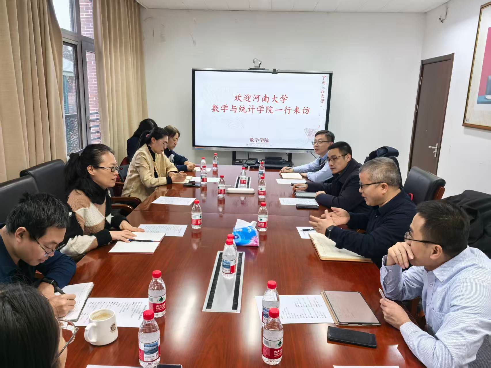 1月14日上午,调研组在中国人民大学数学学院开展交流,学院党委书记柯媛元等领导班子成员出席。双方围绕党建与业务融合、学科建设提质增效等内容座谈交流。双方重点探讨了数学在金融等交叉领域的融合发展路径,并在多个方面达成合作共识,为后续深入协作奠定基础。当天下午,调研组赴首都师范大学数学科学学院交流,学院党委书记高蓉、院长张振雷等出席。张振雷系统介绍了学院发展历史、学科建设成果和人才培养成效。双方就师资队伍建设、课程体系优化等共同关心的话题进行了深入讨论。