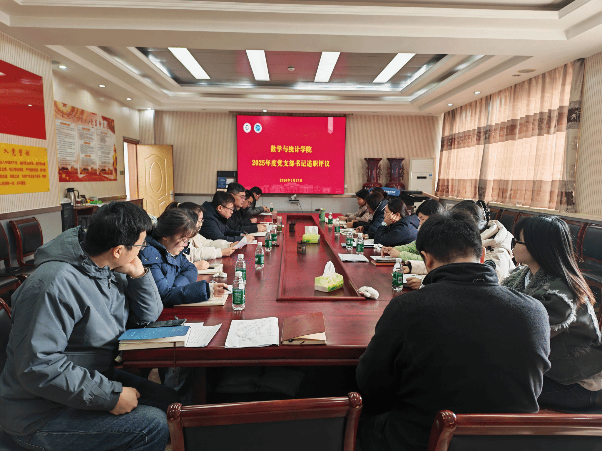 在学院二楼党建活动室召开2025年度基层党支部书记党建工作述职评议考核会。学院党委委员、领导班子成员和各党支部书记参加会议。副院长杨一平主持会议。