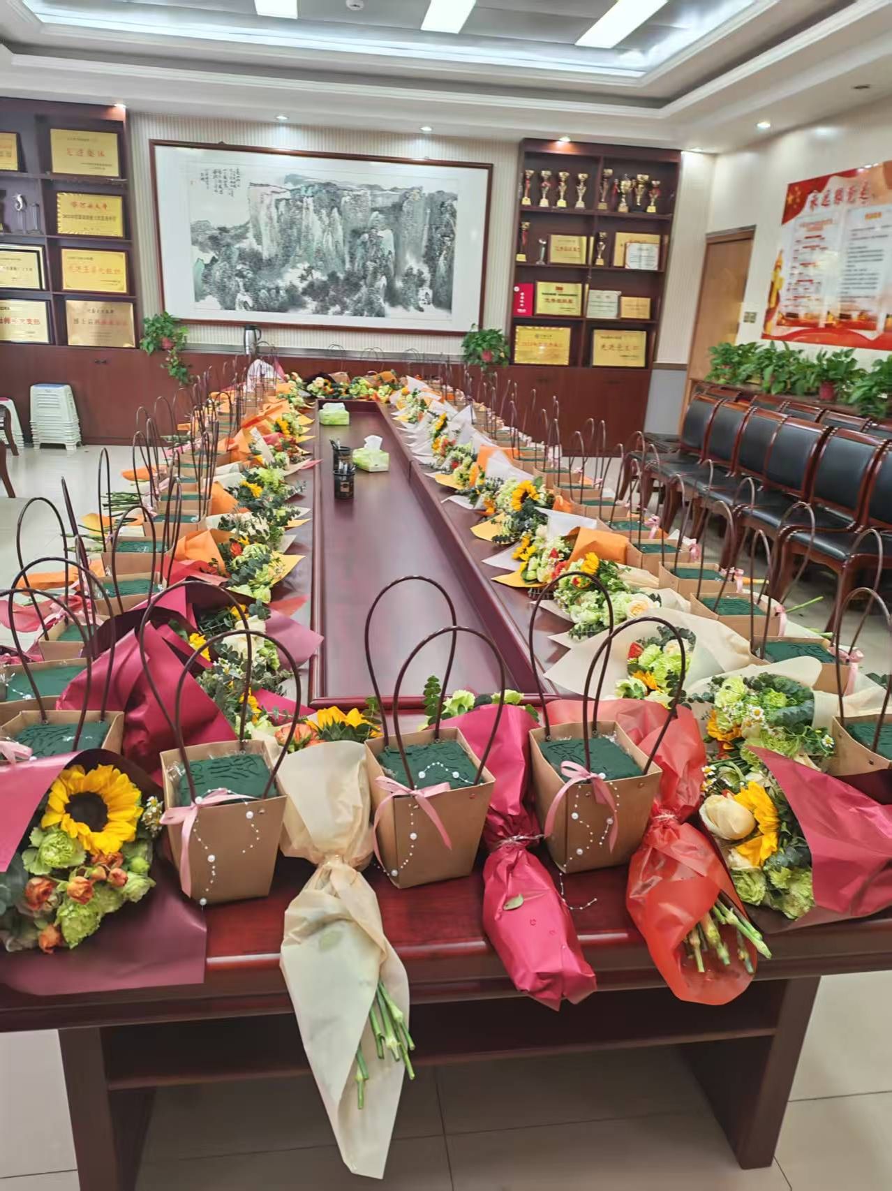 的她们,此刻化身花艺创作者,在轻松愉悦的氛围里交流心得、切磋技艺,现场欢声笑语不断,尽显巾帼风采与生活雅趣。一件件错落有致、清新雅致的插花作品次第呈现,承载着对生活的热爱与对节日的美好祝愿。