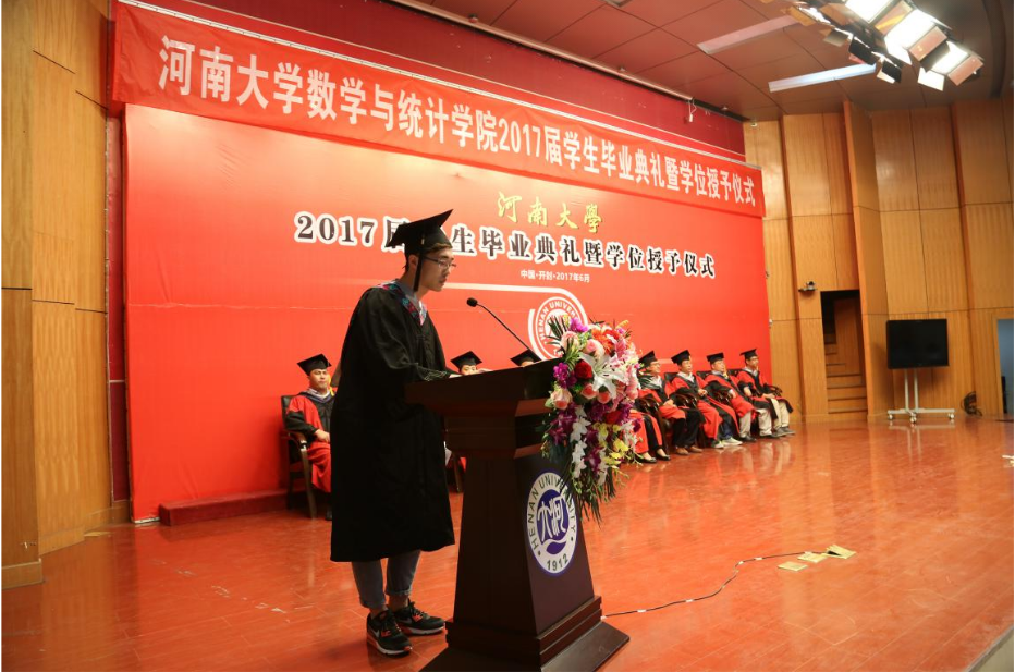 学院2017届学生卞旭作为毕业生代表发言,回忆大学生活的点点滴滴,表达了对母校和学院的培养的感恩之心和难舍之情。