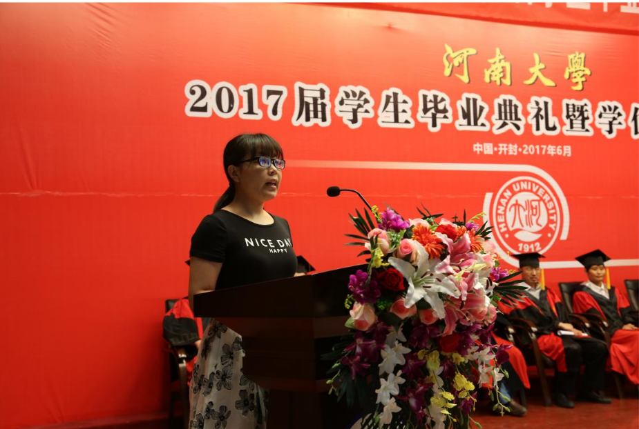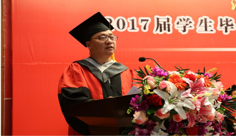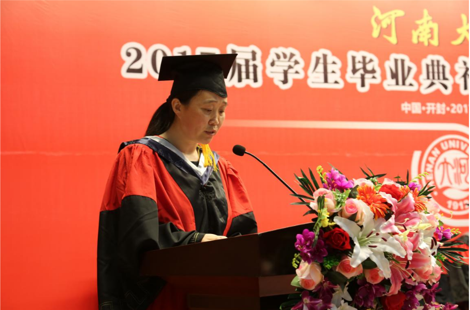 学院党委书记王友成致辞。他向顺利毕业的2017届学生表示真诚的祝贺,并饱含深情地叮嘱同学们:一是记牢大学时光,记住奋斗的青春,保留成长的印记,保持感恩的心态,维持珍贵的友谊;二是传承河大精神,保持自强的精神底色,铸就顽强意志;保持宽容的心态和美德,以更好地与人相处、合作共赢;三是坚守心中梦想,不忘初心,不失初衷,保持前行的动力,努力让生命更加精彩;四是勇于责任担当,做一个对国家、对单位、对家庭有用的人,做一个不负青春、有所作为的人。