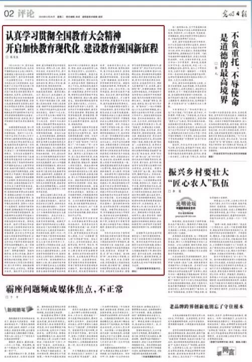 9月25日,教育部党组书记、部长陈宝生在《光明日报》撰文,就如何认真学习贯彻习近平总书记在全国教育大会上的重要讲话精神做了深入阐释。一起看全文↓↓↓