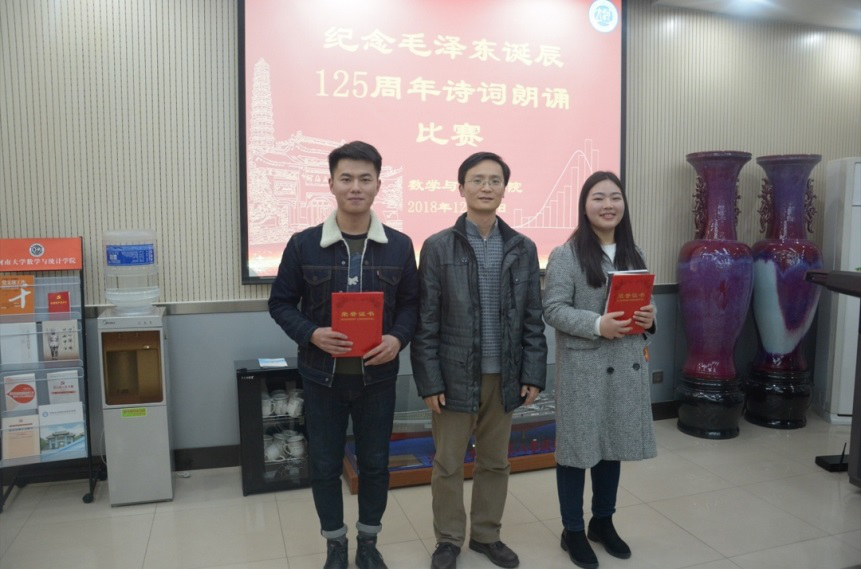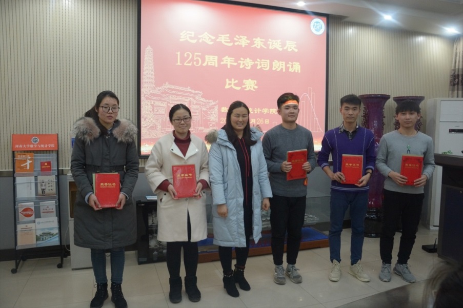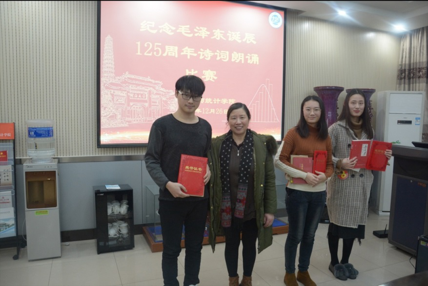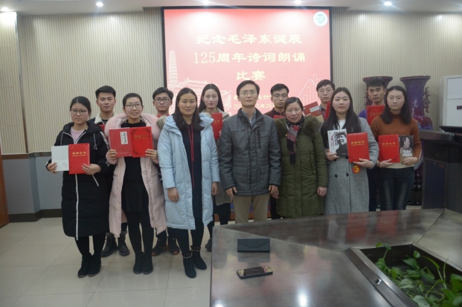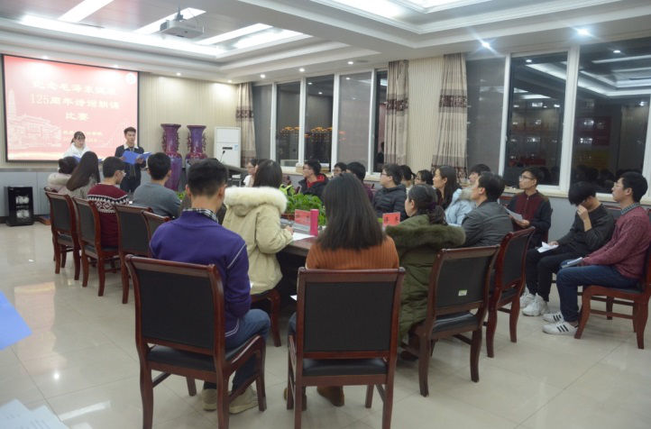 本科第二、第三学生党支部主题党日活动“纪念毛泽东诞辰125周年诗词朗诵比赛”在学院二楼会议室成功举办。学院党委副书记赵红磊,党办主任狄丽娜,关工委成员林加林老师出席并担任评委,比赛由学生党员牛亚婷和张凯主持。