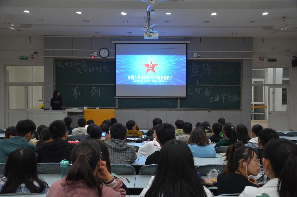 组织第三期青马班全体成员于7205教室观看红色主题电影《建军大业》。