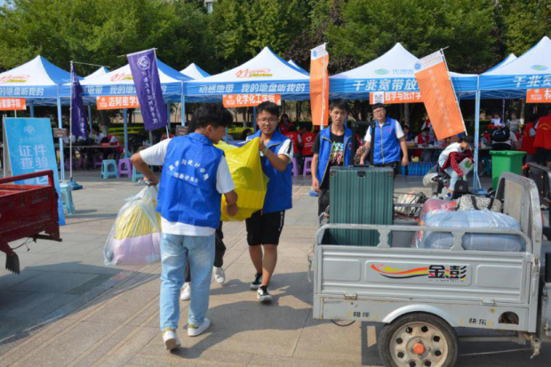 新生都能及时得到积极地迎接与帮助。因疫情原因,学生家长不能进入校园,于是2019级的学长学姐们给“小20”们当起了哥哥姐姐,进校门、迎新站点报到、办理入学手续、宿舍入住,每一个流程都有迎新人员的陪伴与帮助。报到时发放的新生物品袋中,有学长学姐们精心准备的矿泉水、小扇子、学校地图和新生手册等小物品,温馨又实用。迎新“一条龙”式服务,使得家长放心,学生安心,也让新生们能更快地接受校园生活,融入到“河大”这个大家庭中来。