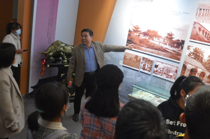 最后,同学们来到位于逸夫图书馆东馆一楼的校史馆。校史馆以时间为主线、以图文、音像及实物等形式,全面展示了学校百余年发展历史。史富强从历史悠久的手稿、校史有关照片到各种历史人物,细致详实地介绍了学校的建校历史、抗战办学史、往届知名教授及尼克成人网