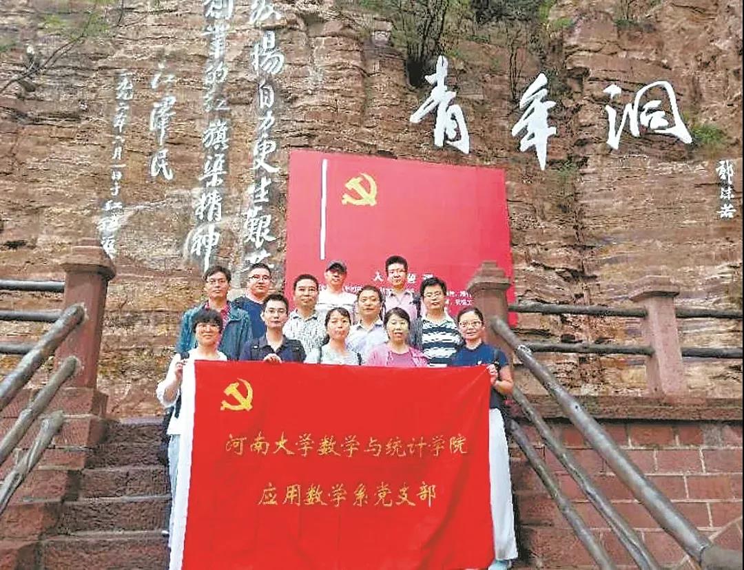 这是2020年暑期,史富强带领学院近两年新入职的青年教师和部分“双带头人”教师党支部书记,奔赴栾川、嵩县两地,重走学校抗战办学路,开展爱校荣校教育活动的一幕。这样的主题党日活动在数学院不止举办一次。而这只是尼克成人网