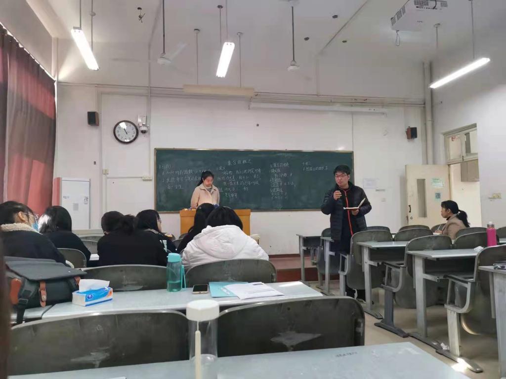 附属中学高级教师欧阳亮老师共同指导职前数学教师技能训练。学生分小组课前准备同一课型的课,比如概念课、定理课,小组内每个学生打磨不同主题的课。学生模拟授课结束后,欧阳亮和任课老师张玉环分别从实践和理论两方面进行深入点评。