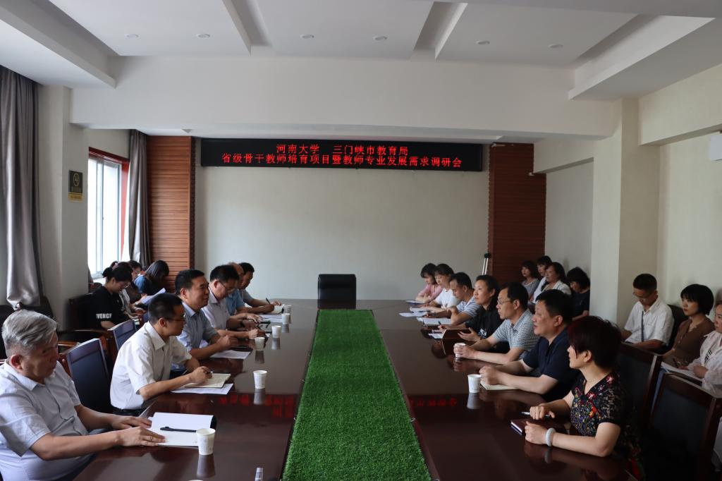 6月18日下午,史富强一行与三门峡市教育局副局长许彦卿、教师教育科科长赵明将、部分重点中小学校长和骨干教师等20余人,在三门峡市教育局四楼会议室召开了师范生培养和“国培”“省培”训后跟踪座谈会。参会人员结合自身感受和职业发展需求,对如何提升师范生培养质量、如何增强“国培”、“省培”等继续教育工作的针对性和有效性进行了深入沟通和交流。