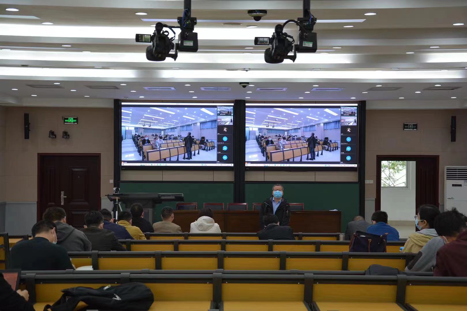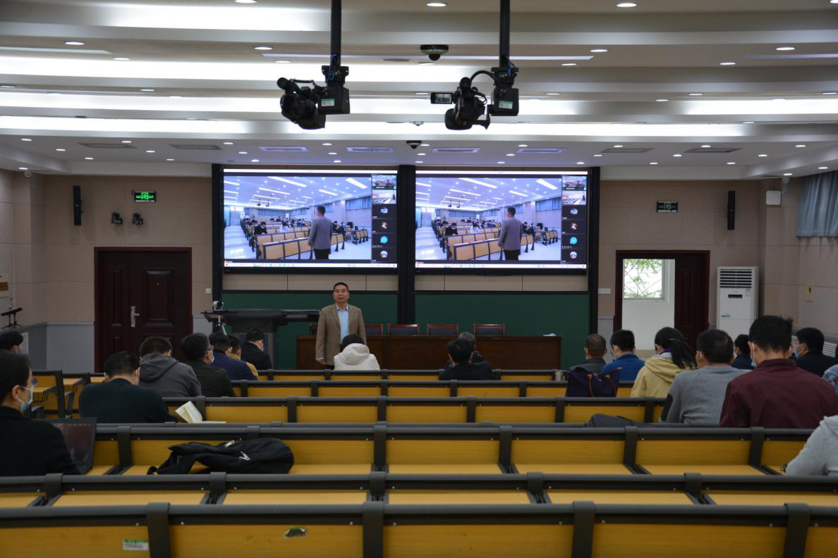 根据疫情防控要求,通过线上线下相结合的方式召开全体教职工大会。全体院领导、学院中层干部及管理人员在学院南阶教室参会,其他教职工在线上参加会议。本次会议由院党委书记史富强主持。