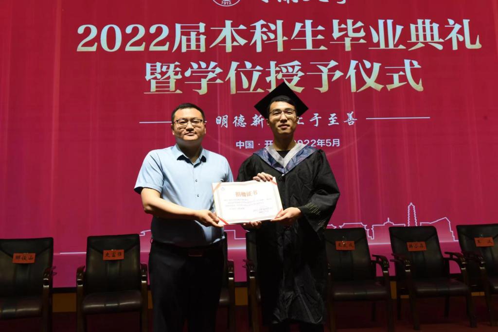 受校长宋纯鹏委托,学院学位委员会成员为2022届本科毕业生援正流苏,颁发学位证书并合影留念。