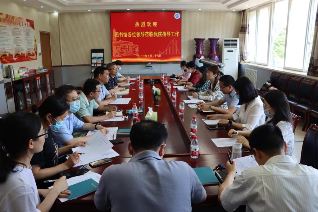 5月26日下午,图书馆党总支书记牛娴、副馆长于兆军一行到我院进行调研指导工作。学院党委书记史富强、院长韩小森、副院长王波、杨一平、解俊山、唐恒才以及部分教师和学生代表参加了座谈。