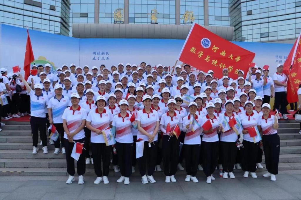 活动开始前,参与活动的老师在学院集合后,列队行进至金明校区图书馆广场,与其他单位教师一起等候活动开始。老师们身着纪念服饰,手拿国旗和活动旗帜,洋溢着幸福的笑容,渴望着用自己的脚步表达自己内心的喜悦。