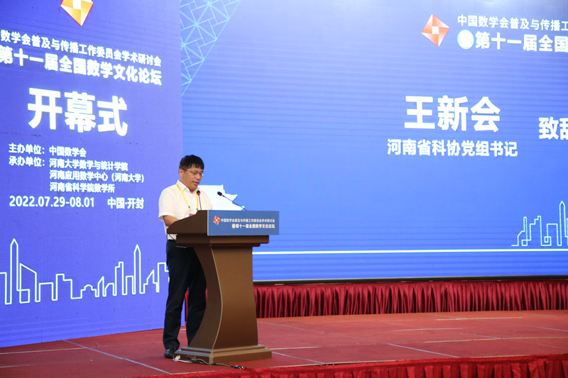 )、河南省科学院数学所共同承办的第十一届全国数学文化论坛在我校举办。7月30日上午,论坛在开封开元名都大酒店学术报告厅开幕。中国数学会理事长田刚院士,中国科协副主席袁亚湘院士,河南省科协党组书记王新会,河南省科学院副院长罗春祥,中国数学会副理事长周爱辉研究员,山东大学副校长刘建亚教授,尼克成人网