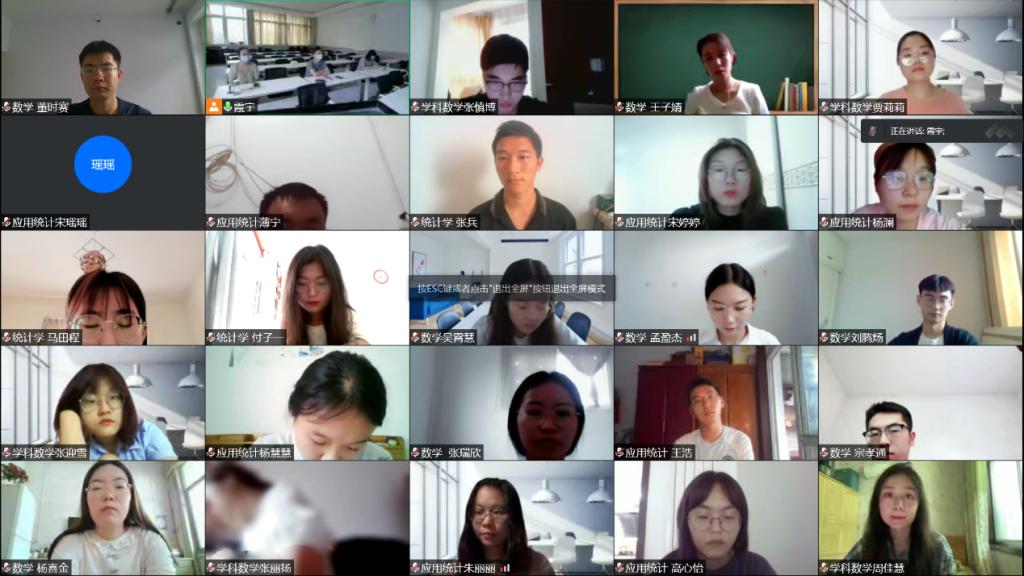 首先同学们在向党组织靠拢、加入研究生会、图书馆学习规模等方面提出疑问,与会老师对同学们提出的问题作了回应和解答。接着赵红磊对学院自习室设置、后勤保障、当前疫情防控政策以及返校前注意事项进行了具体说明,要求同学们尽量减少流动,做好防护,届时安全返校。然后同学们交流了这段时间参加新生入学教育的感受。