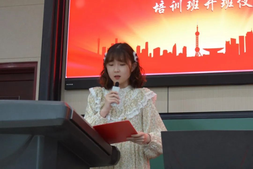 学员代表刘云佳发言,她表示作为新时代大学生,要与新时代共同前进,不忘初心,肩负使命,坚定信心跟党走,争做社会主义合格接班人。
