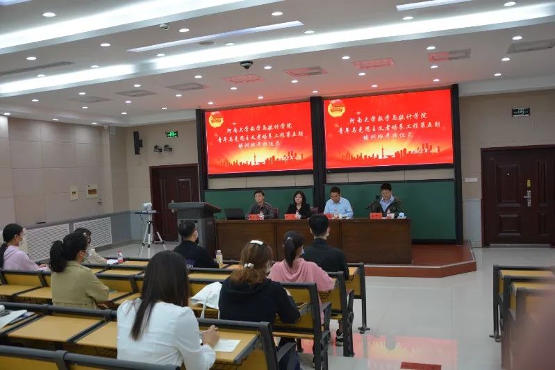青年马克思主义者培养工程第五期培训班开班仪式暨第一讲在学院二楼南阶梯教室举行。校团委书记沙莎、院党委书记史富强、院党委副书记赵红磊及100余名青马班学员通过线上线下相结合形式参加会议。开班仪式由院团委负责人梁争文主持。