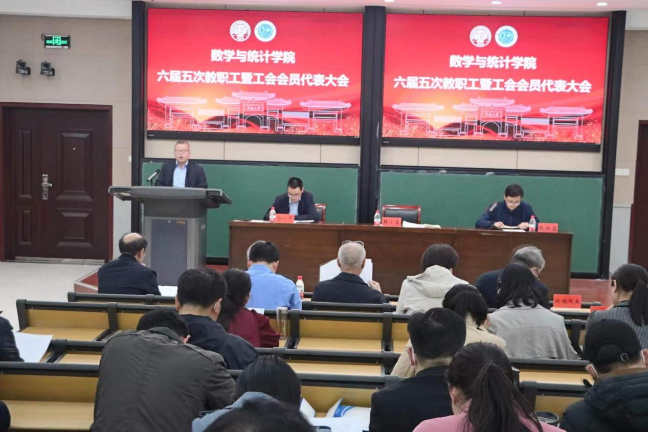 会议第一阶段由学院党委副书记赵红磊主持。院长韩小森作了《新百年 再出发 为实现学院更快更好发展而接续奋斗》的学院工作报告。韩小森在报告中谈到,2022年是不平凡的一年,疫情反复不断,为学院各项工作开展带来了诸多不利影响,但在全院师生的共同努力下仍取得了可喜成绩,学院数学学科由C+升至B-,实现了重大突破,为学院新百年发展奠定了良好开局;统计学科继续稳定在C+,党的建设、学科建设、科学研究、人才培养、师资队伍建设、国际化交流、服务保障等方面均取得长足进步。2023年,在建院100周年的重要历史时刻,学院将继续以习近平新时代中国特色社会主义思想为指引,以百年院庆为契机,以更加积极的态度、更加执著的努力、更加务实的作风,为学院更快更好发展而接续奋斗,不断创造学院发展新辉煌。