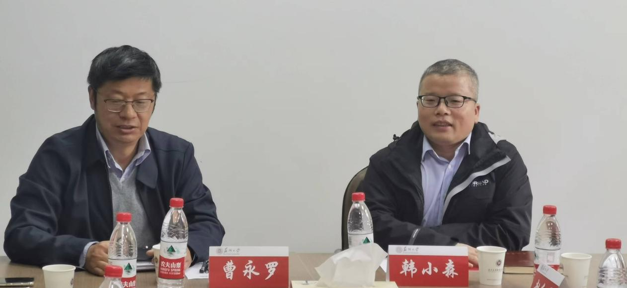 一行5人在院长韩小森带领下赴苏州大学数学科学学院调研交流。苏州大学数学科学学院党委书记逢成华,院长曹永罗,党委副书记、副院长蒋青芳,副院长顾振华,计算科学系主任陈旻昕,统计系主任严继高等热情接待了调研组并进行了座谈交流。