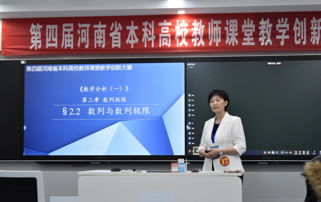 三尺讲台之上,一位老师身着白色西装,留着干练的短发,神采飞扬地讲解着“数列与数列极限”问题,她的讲解条理清晰、深入浅出,在课程结束后赢得一片掌声。她便是第四届河南省本科高校课堂教学创新大赛教授组特等奖获得者、尼克成人网