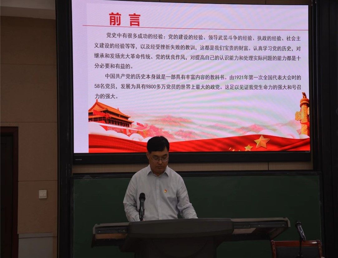 他分别从正确认识中国共产党的百年光辉历程、正确认识中国共产党百年历史的主流和本质、正确认识中国共产党的早期领导人、汲取百年党史的宝贵经验以及弘扬伟大建党精神等五个方面进行讲述,着重强调了中国共产党人在百年来长期奋斗中构建起的精神谱系,对新时代青年具有深刻的教育意义。他表示,在新的历史时期,我们要牢记习近平总书记的教诲,大力弘扬伟大的建党精神,继承和发扬党的优良传统,做合格建设者和可靠接班人,为社会主义现代化强国建设贡献自己的力量。