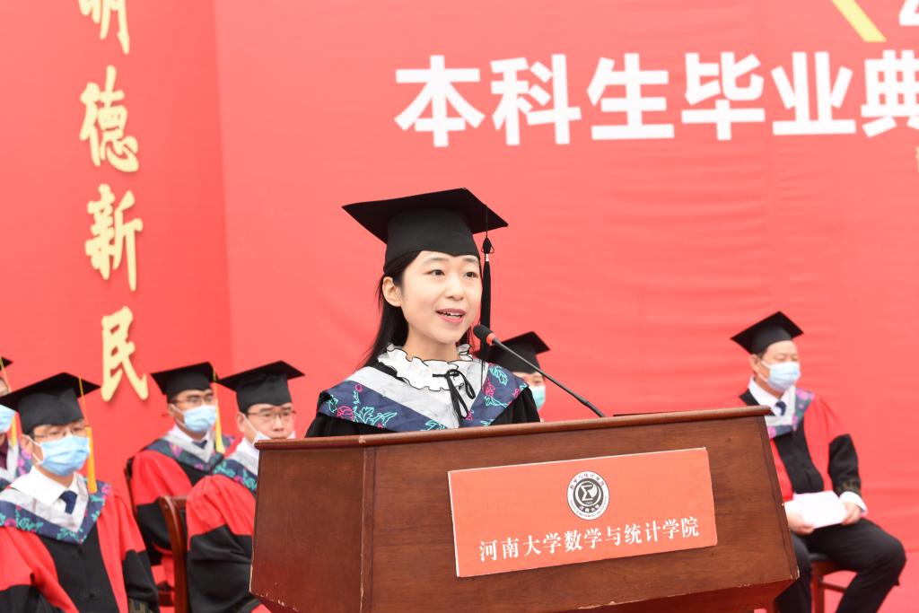 毕业生泪眼婆娑,饱含对母校的眷恋与不舍。数学与应用数学专业2016级明德计划实验班学生解雯佳代表毕业生发言,深情感谢母校和老师们的悉心培养。她说:“学院的一草一木、一砖一瓦都见证着我们的茁壮成长,承载着我们的美好回忆。毕业后,大家一定要牢记校训“明德新民,止于至善”,弘扬百折不挠、自强不息的河大精神,培养与时俱进的创新思维,勇于担当社会责任,积极投身祖国建设。”一言一语饱含深情,一字一句铿锵有力,表达了尼克成人网