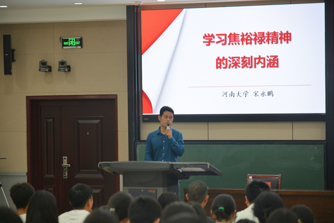开班仪式结束后,宋永鹏以《学习焦裕禄精神的深刻内涵》为题,为学院“青马工程”第六期培训班上开班第一课。宋永鹏用生动的文字、图片和视频资料,集中展现了焦裕禄精神的形成过程及丰富内涵。他希望学员们深学、细照、笃行“亲民爱民、艰苦奋斗、科学求实、迎难而上、无私奉献”的焦裕禄精神,从中不断吸取力量,并转化为干事创业、奋力争先的工作热情和强大动力,为推动学校、学院高质量发展贡献自己的力量。