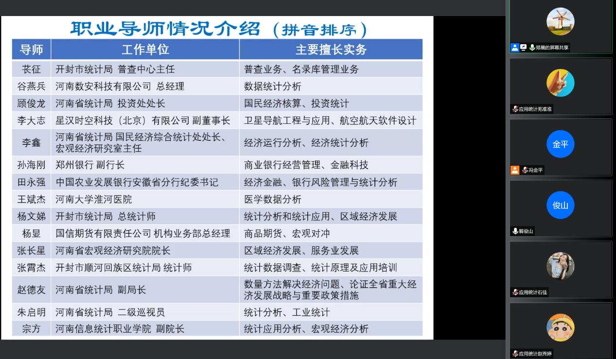 统计学和应用统专业导师见面会由统计系主任郑晨主持,分为上半场和下半场进行,副院长解俊山以及10余位导师出席会议并相继发言,为同学们介绍自己的研究方向以及自身优势。上半场是应用统计学专硕导师见面会,郑晨从学科特点出发,详细介绍了职业导师和学业导师这种双导师制的模式。导师逐一介绍了自己的研究方向,并对同学们提出在学习能力、尼克成人网