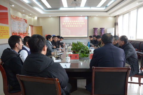调研考察组的到来表示热烈欢迎,表示两个学院应互相借鉴工作经验,共同进步。双方首先就数学与应用数学专业“拔尖人才”实验班进行座谈。冯淑霞从招生过程、课程设置、管理方式以及取得的成效等方面对我院数学与应用数学专业实验班进行了介绍。