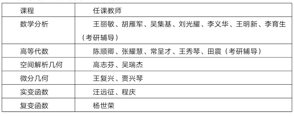 高志芬老师,嗓音洪亮,板书流利工整。李廷杰老师,高挑消瘦,课间总是吸一支烟提振精神。常呈才老师上课开朗活泼,喜欢和学生互动。 吴瑞杰老师讲课时,爱眯着眼思考问题一会儿再讲解。徐兴辰老师上课,写起板书一笔一划,然后退一下讲台,仔细端详自己的板书,满意了继续上台书写、讲解。王复兴老师讲课,表情严肃,话不多说。贾兴琴老师辅导尽心认真,每道题的证明写得密密麻麻,详实具体。苏玉泉老师上课嗓门洪亮,京腔十足。海福安老师刚参加工作,个子高挑,腼腆内向。张友铭老师,同学张扬的父亲,只给我们讲过一段时间《点集拓扑学》,面色红润,板书整齐流畅。史存海老师接下张老师的课,继续教我们,他跟随刘亚星教授攻读硕士学位,学术水平不可小觑。李亦芳老师,79级留校任教,和史老师搭帮上习题课,声音洪亮,板书流利工整,后调到华北水电大学工作。周明存老师讲课,低调内敛,声音不是太高,后来到了教务处搞教学管理了。邓聚成老师郑州大学硕士毕业,后来和我都是搞偏微分方程研究的,板书流利通畅,学问深厚,在学业上经常指导我。