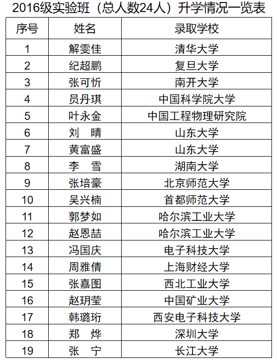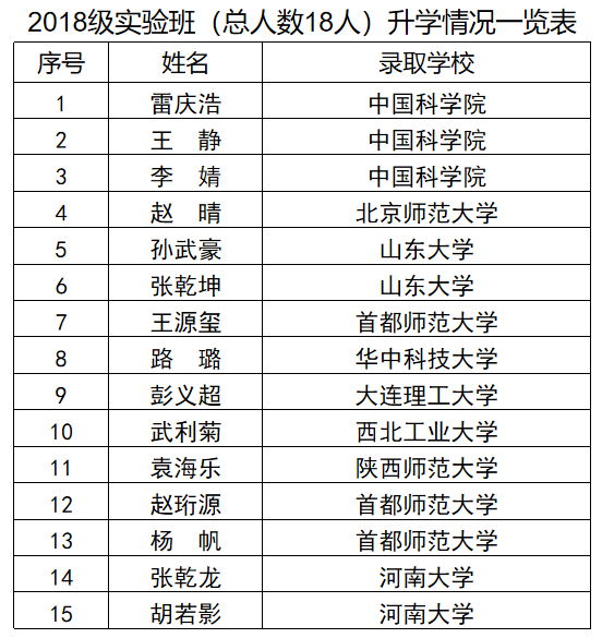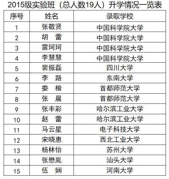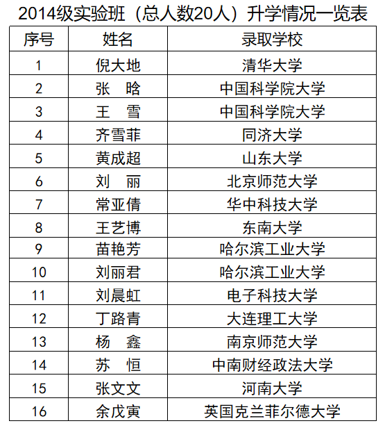近五年实验班学生平均考研录取率达到80%,大部分学生保送或者考取中国科学院、清华大学、复旦大学和南开大学等全国著名高校和尼克成人网