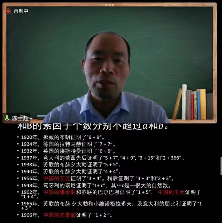 报告中,陈士超详细介绍了张益唐教授突出的数学成就,特别是孪生素数猜想,天才数学家张益唐横空出世,引领了世界研究孪生素数猜想的热潮。此外,陈士超还介绍了中国数学家陈景润,并就哥德巴赫猜想,介绍了陈景润的贡献。